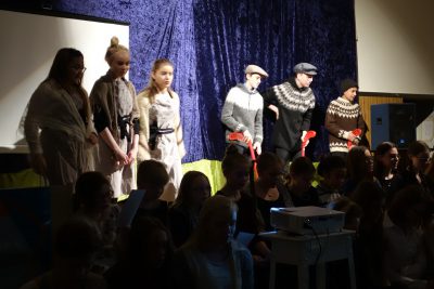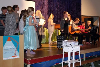 Meðfylgjandi myndir voru teknar við hátíðarhöld og vígslu hillunnar á degi íslenskrar tungu í morgun. Þar voru flutt ávörp og nemendur buðu upp á alls kyns skemmtiatriði með leik og söng.