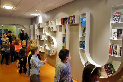 Í morgun var svokölluð lestrarhilla vígð í Oddeyrarskóla í tilefni af degi íslenskrar tungu. Hillan er í fimm hlutum og myndar orðið „LESTU“. Í henni má finna bækur við hæfi grunnskólakrakka og þeir hvattir til að taka sér bók í hönd og lesa.