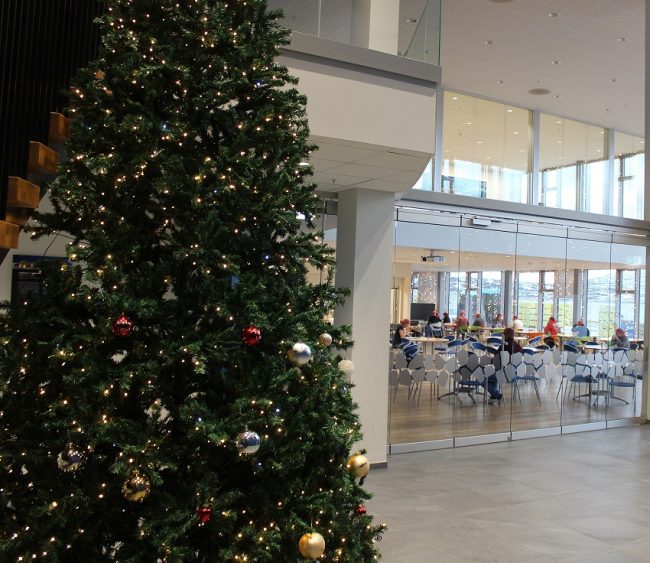 „Já, það er óhætt að segja það. Við héldum litlu-jól með tilheyrandi borðhaldi, fórum saman á jólatónleika og í leikhús með börnin. Á milli jóla og nýárs verður svo heljarinnar jólatrésskemmtun, þannig að það er heilmikið um að vera. Vinnustaðurinn er fallega skreyttur svo hérna eru allir í sannkölluðu jólaskapi.“