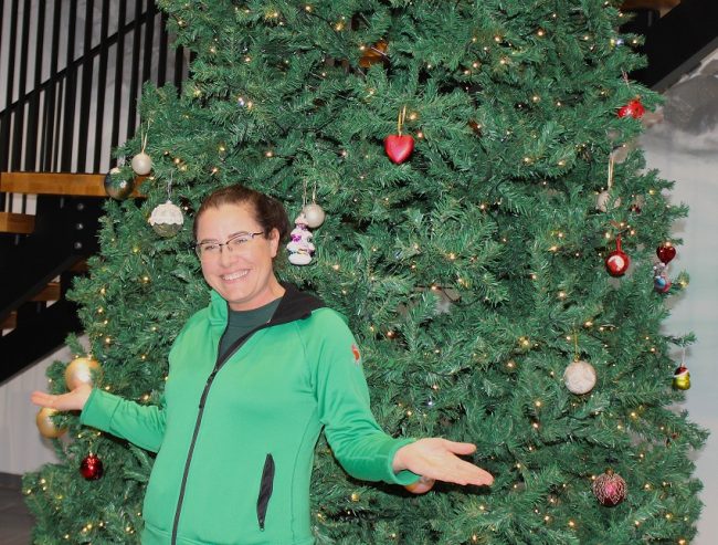 „ Ég nefndi þetta við Ragnheiði Rut, sem er formaður starfsmannafélagsins og hún tók strax vel í þessa hugmynd. Eftir að tréð var sett upp voru skilaboð send til starfsfólksins um að taka þátt. Jólakúlum hefur síðan fjölgað dag frá degi og tugir jólakúla með nöfnum starfsfólksins prýða nú hið veglega jólatré. Heima í Lettlandi er þetta algengt í skólum og á vinnustöðum og mér fannst tilvalið að innleiða þetta hérna á Dalvík,“ segir Olga.