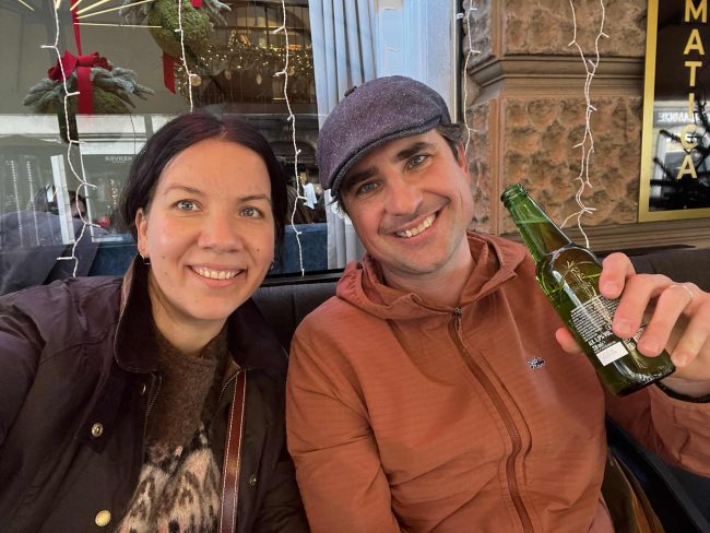 Hjónin Slavko og Karin Spanjol, standa að baki nýjum matarvagni á miðju Hafnarstræti á Akureyri. Hjónin, sem koma frá Króatíu og Eistlandi, kynntust á Íslandi og létu draum rætast þegar þau opnuðu Fjaka crêperie matarvagninn.
