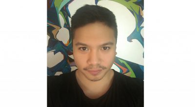 James Earl Ero Cisneros Tamidles sem gengur undir listamannanafninu Cistam var að opna listasýningu á bókasafni Háskólans á Akureyri í gær, 6.október.