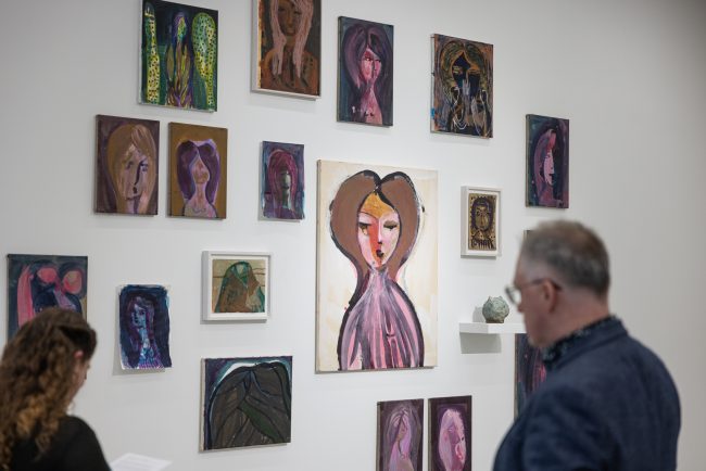 Sýningin Huldukona sýnir breidd í verkum Huldu sem endurspeglast bæði í efni og efnistökum. Hún tengir saman tvívíð og þrívíð verk og sýnir samhengi efnistaka og efna, efna sem eru alvöru, steinleir og grófur strigi. í áferðinni er handbragðið, hendur listamannsins sem heiðrar efnið með formvali sínu.