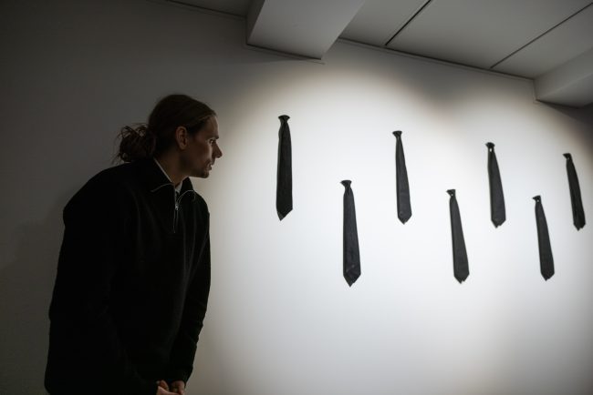 Í verki Þórðar Hans, Karlakórinn í veggnum, glæðir listamaðurinn lafandi svört bindi lífi með notkun hljóðs og hreyfingar. Þá kunna bindin að tákna karlmannlega reglufestu og valdastöðu, en með samspili söngs og hreyfingar kemur verkið áhorfendum á óvart og afhjúpar ýmsar óséðar flækjur á gamansaman hátt.
