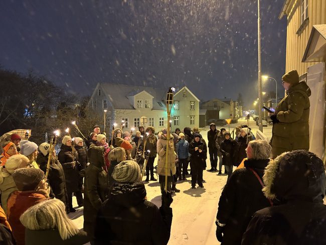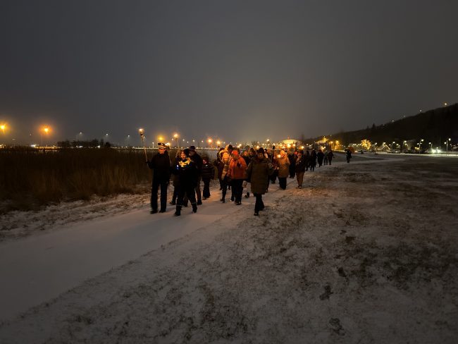Raunar var mætingin svo góð að ekki voru nógu margir kyndlar til fyrir alla sem mættu.