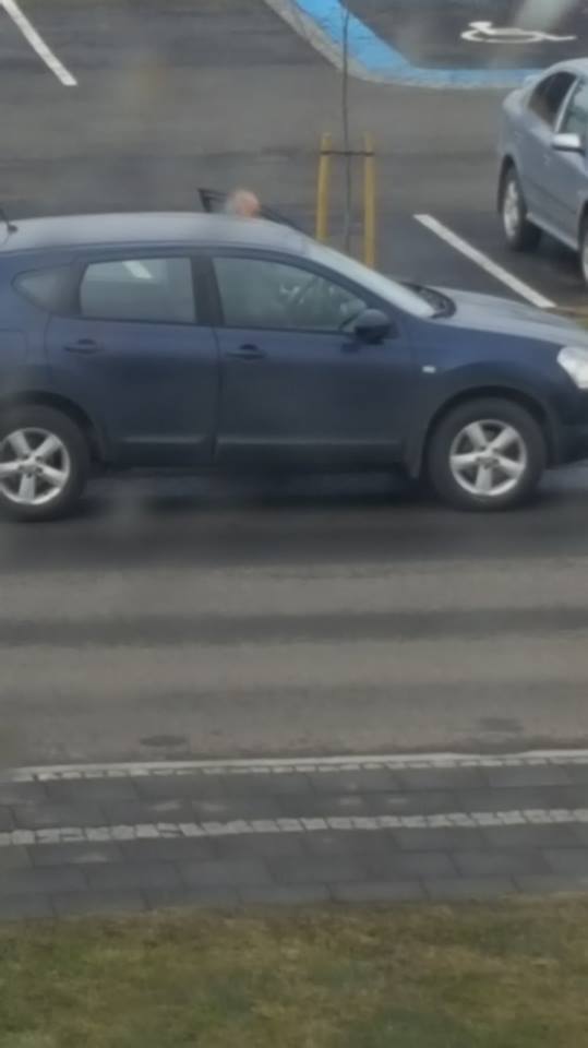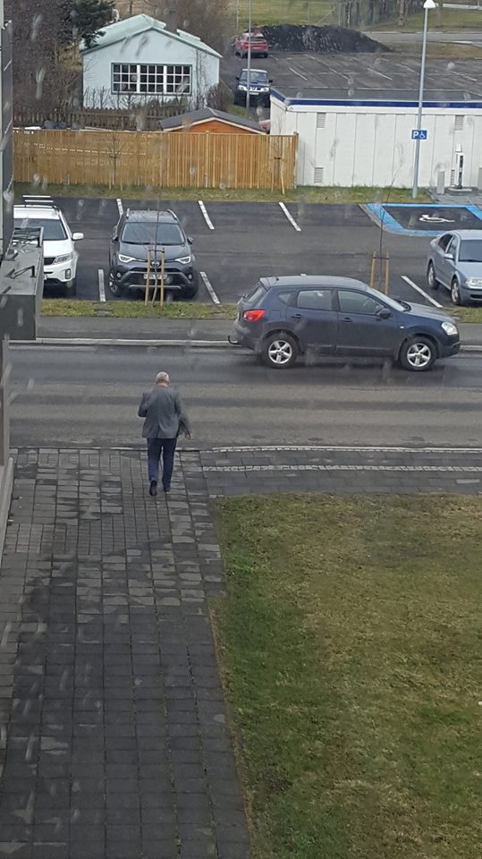 Mynd sem Jón Aðalsteinn birti á Facebook af Loga ganga aftur í bifreið sína.