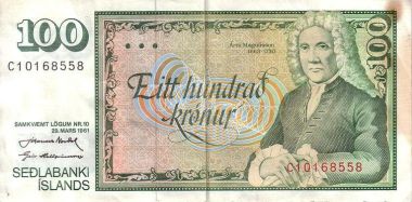 Árni Magnússon á gamla 100 krónu seðlinum.