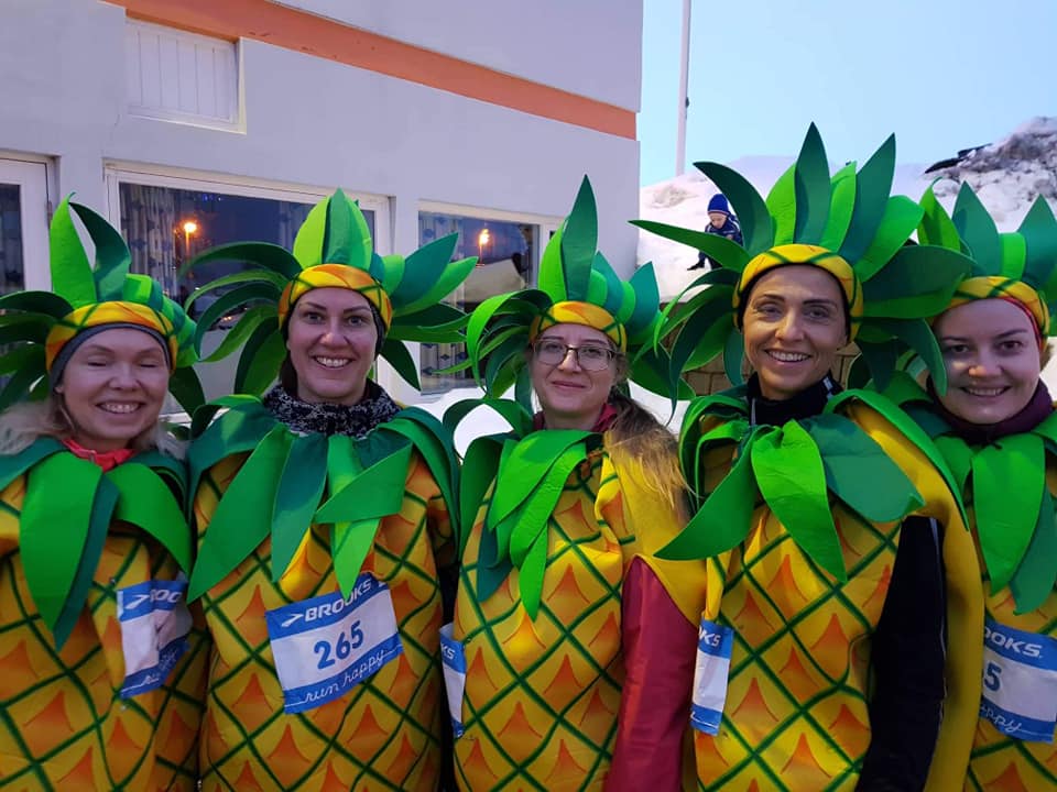 Einnig voru veitt verðlaun fyrir best klædda liðið. Sigur úr bítum í þeirri keppni báru Ananasarnir sem sjá má myndinni sem fylgir fréttinni.