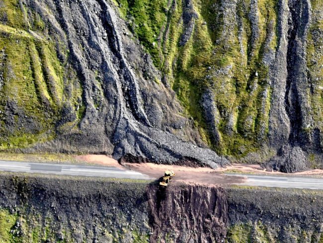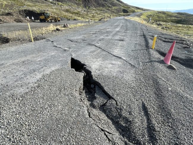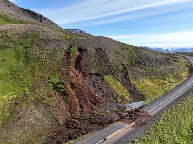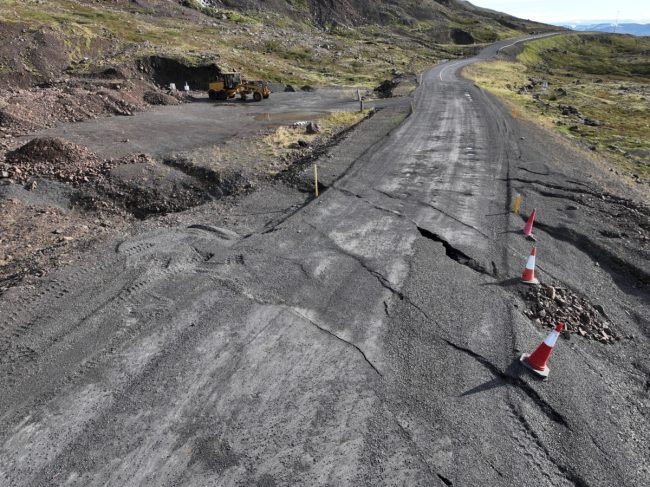 Aurskriður, jarðsig og grjóthrun urðu á Sigufjarðarvegi um helgina. Mikið tjón er á veginum, líkt og myndir sýna, og er vegurinn enn lokaður eins og segir áður frá. Eftir úrkomu síðustu helgi segir Vegagerðin að um mikið grjóthrun og töluverð hreyfing hafi orðið á landinu. Vegurinn verður lokaður þar til á morgun, miðvikudagurinn 28. ágúst.