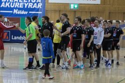 Það var mikil stemning í Íþróttahöllinni á Akureyri í gær þegar Akureyri tryggði sér titilinn en hér að neðan má sjá myndir frá leiknum og fagnaðarlátunum.