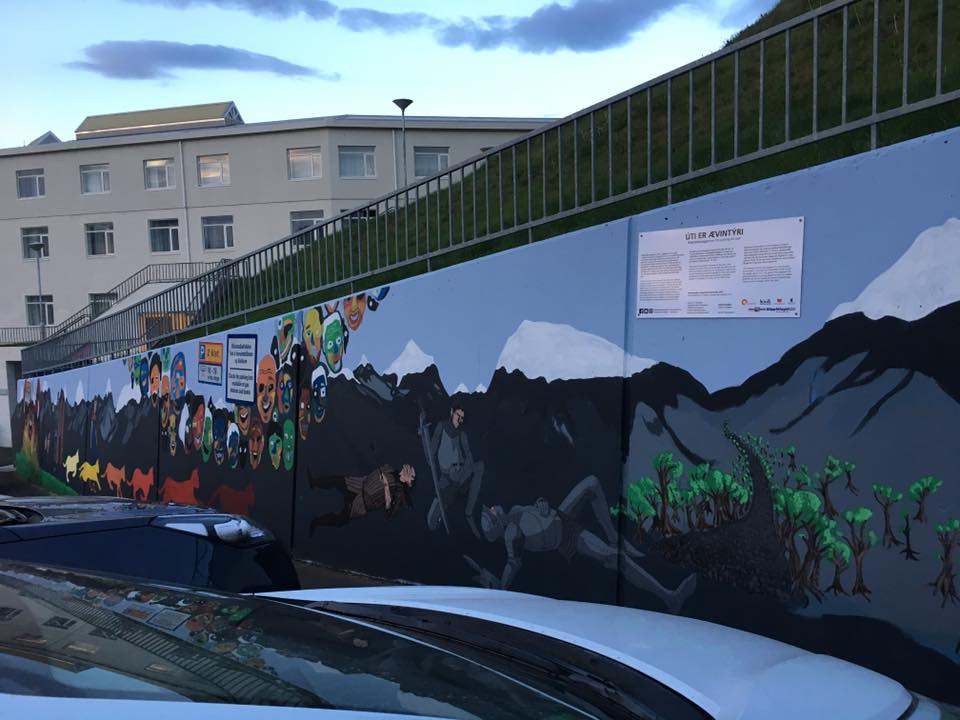 Í síðustu viku var lokið við nýtt listaverk á bílastæðaveggnum í Listagilinu. Það voru Skapandi Sumarstörf sem sáu um verkið í samstarfi við Listasumar á Akureyri. Verkið ber nafnið „Úti er ævintýri“. Skapandi Sumarstörf hafa unnið að verkinu í sumar ásamt því að hafa unnið að öðrum verkefnum tengdum list. Hópurinn er starfræktur í Rósenborg á Akureyri.