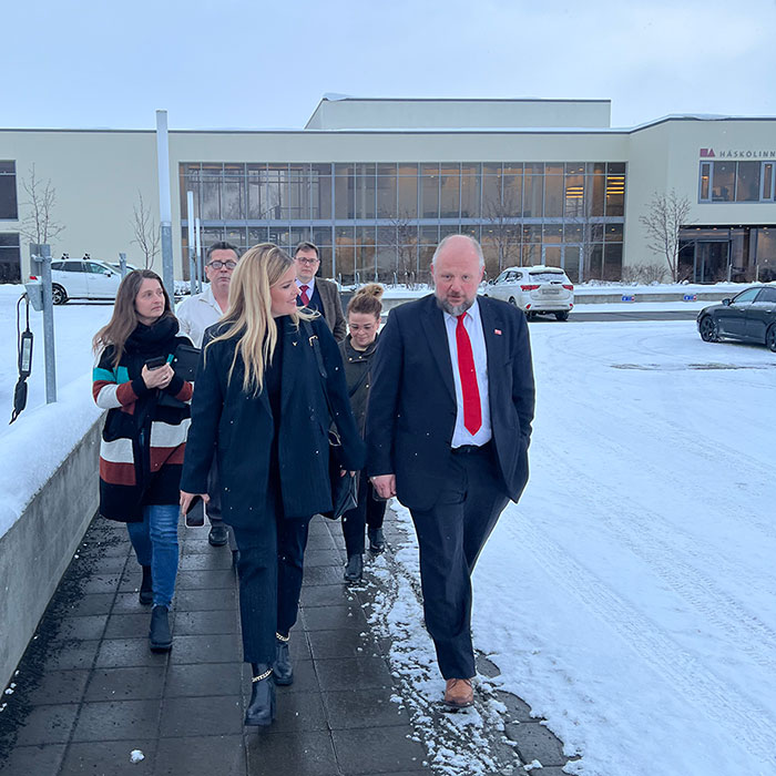 Í síðustu viku fékk Háskólinn á Akureyri heimsókn frá Áslaugu Örnu Sigurbjörnsdóttur, háskóla- iðnaðar- og nýsköpunarráðherra. Rektor skólans, Eyjólfur Guðmundsson, tók á móti henni og sýndi henni háskólasvæðið og möguleika þess. Þar að auki var litið inn á rannsóknarstofurnar þar sem sviðsforseti Viðskipta- og raunvísindasviðs, Oddur Þór Vilhelmsson, fór yfir málin þar. Loks var fundað með framkvæmdarstjórn.