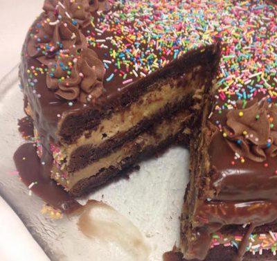 5. Hellið restinni af súkkulaðigljáanum yfir kökuna og leyfið gljáanum að leka niður hliðarnar (rólega!)