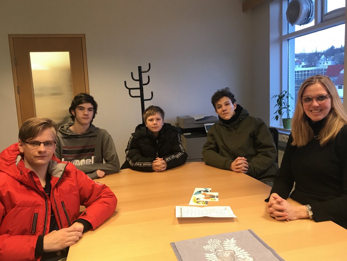 Þeir Maciej Marek Mazut, Óðinn Andri Andersen, Örn Sigurvinsson og Eduard Lauur, litu við hjá Ásthildi Sturludóttur, bæjarstjóra Akureyrarbæjar í vikunni og ræddu við hana um börn og mannréttindi.