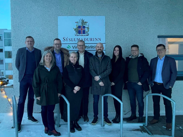 - Mynd: Fulltrúar innviðaráðuneytisins, Byggðastofnunar, Útlendingastofnunar og Sýslumannsins á Norðurlandi eystra fyrir utan skrifstofu Sýslumannsins á Húsavík.