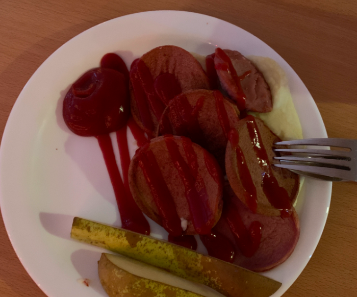„Grænmeti er af skornum skammti, en þá helst hrátt eða úr dós. Fiskur er borinn fram meðal annars með sykruðum tómatsósum eða með snakki, og næringarlitlar súpur úr súpudufti eða mjólkurgrautar með kanilsykri eru í boði á föstudögum,“ segir Eyrún í spjalli við Kaffið.