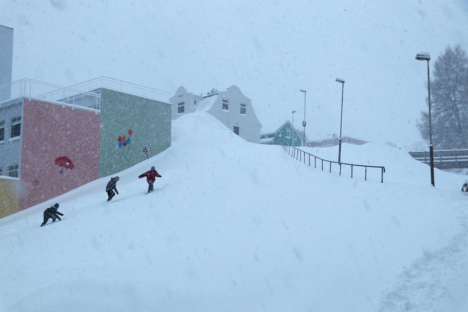 Í dag lokuðu leik- og grunnskólar kl. 13 þegar veður var farið að versna til muna.