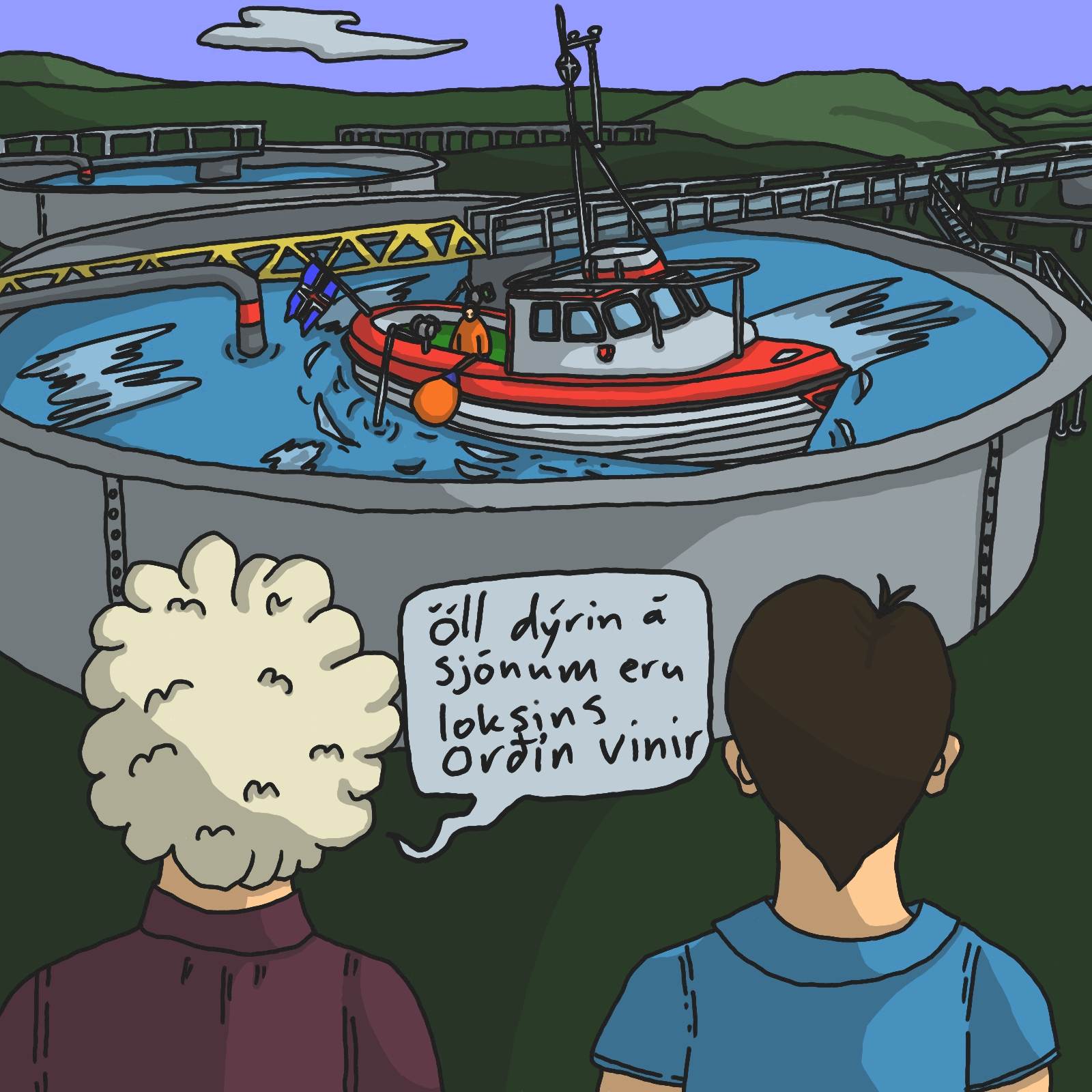 Strandveiðimenn ættu kannski erfitt með að kyngja þessu, en hægt væri að gera Truman show-esque veruleika fyrir þá, þar sem þeir vita ekki af því að þeir séu í sjókvíum að veiða. Gervigreindin hlýtur að geta séð fyrir þessu einhvern veginn, enda finnur hún lausnir við flest öllu þessa dagana. Verst væri þó ef einhverjir strandveiðimenn myndu lesa þetta, en þeir eru tæplega læsir, svo ekki þarf að hafa stórar áhyggjur af því.