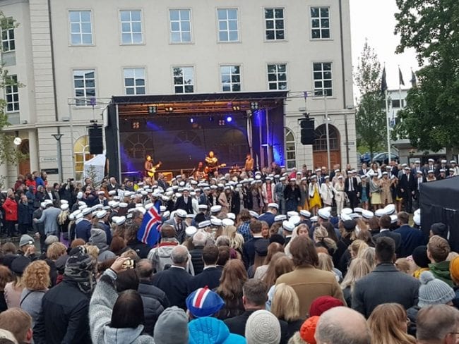 Fjölmenni kom saman í miðbænum að fylgjast með nýstúdentum marsera