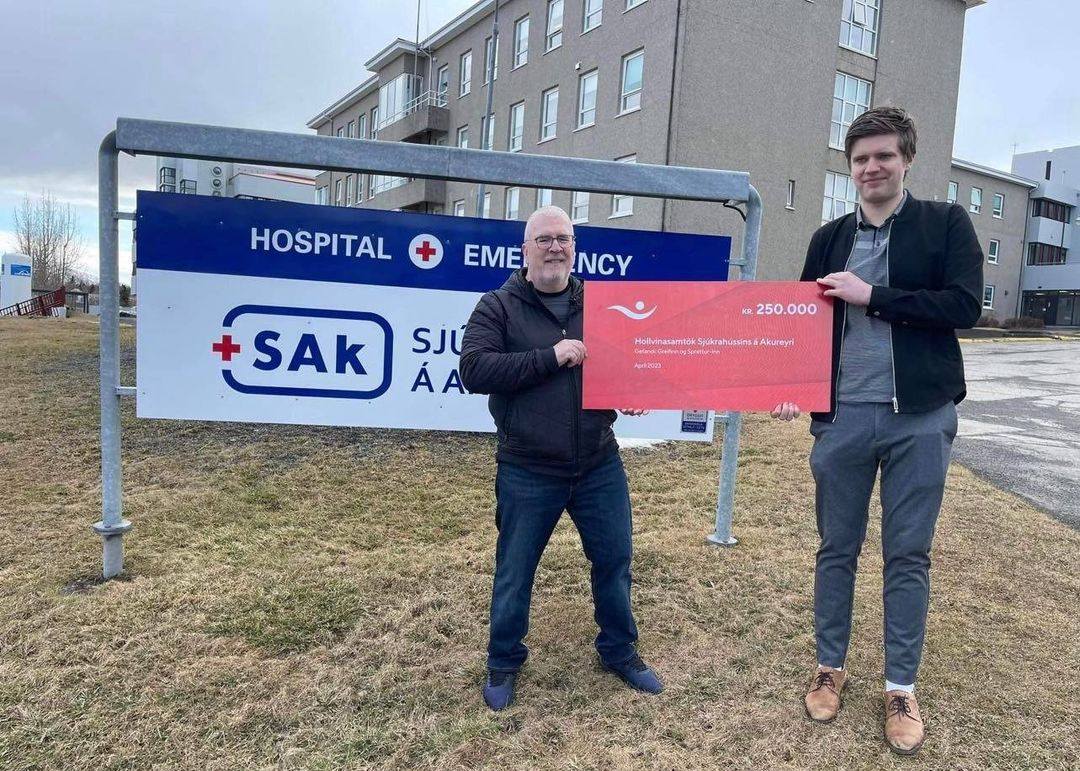 Starfsfólk matsölustaðanna Sprettsins og Greifans á Akureyri færði Hollvinasamtökum Sjúkrahússins á Akureyri 250 þúsund króna peningagjöf fyrir páska.