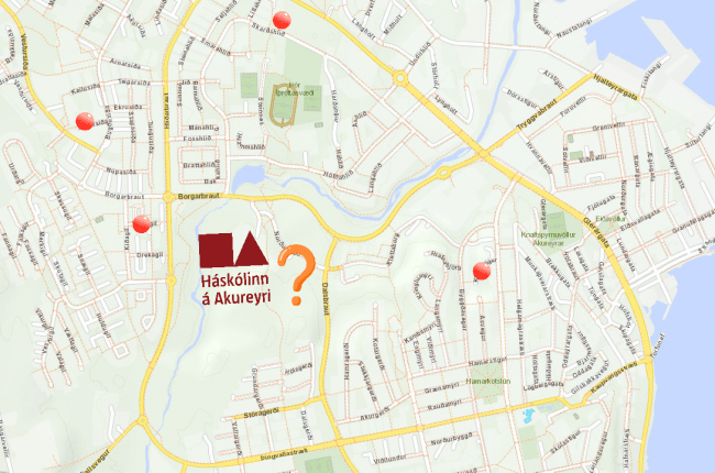 Núverandi stefna hefur verið byggð á því að dreifa stúdentaíbúðum sem víðast um bæinn, hentar það? Við erum kynslóð sem pælir mikið í umhverfinu til dæmis. Þarftu að eiga bíl? Hvernig eru samgöngur? Gæti maður búið nær? Labba? Hversu nálægt skólanum eru garðarnir í dag? Í dag eru þeir í Kjalarsíðu, Tröllagili, Drekagili, Skarðshlíð og Klettastíg. Samkvæmt aðalskipulagi Akureyrarbæjar er gert ráð fyrir stúdentaíbúðum og þjónustu við Háskólann inn á svæðinu í kringum skólann. Er ekki kominn tími til þess að sköpuð sé stefna í þessum málum til næstu 50 ára? Hvernig viljum við sjá háskólann okkar dafna?