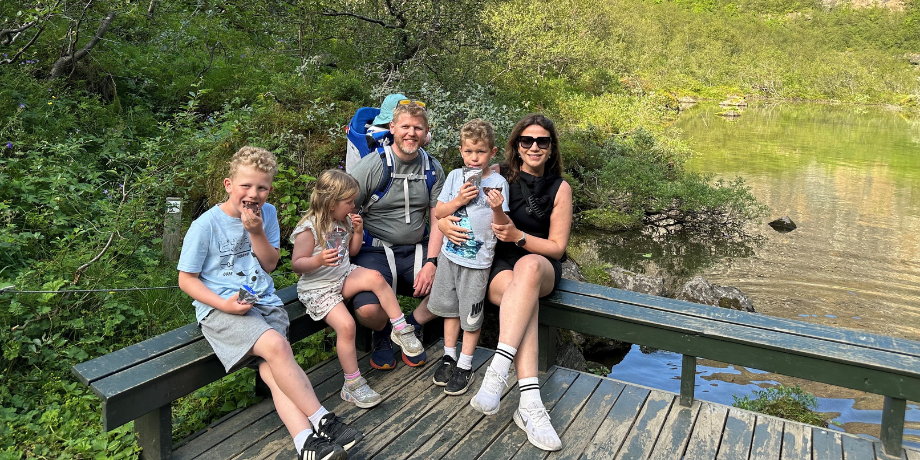 Þegar Kristína Björk er að skila meistaraverkefninu gekk hún með fjórða barn þeirra hjóna og hún segir eiginmann sinn, Helga Þór Leifsson, grjótharðan Akureyring og það hafi átt stóran þátt í vali á búsetu. „Akureyri er dásamlegur staður til að ala upp börn og njótum við fjölskyldan þess að vera hér. Við erum heimakær, eldum góðan mat, spilum en við erum líka dugleg að bregða undir okkur betri fætinum og ferðast innanlands sem utan.“
