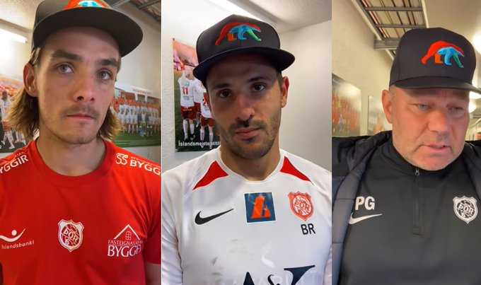 „Stjórn knattspyrnudeildar Þórs harmar það atvik sem átti sér stað að loknum leik Þórs og Grindavíkur í 1. umferð Lengjudeildarinnar sl. föstudag 19. júní, þegar leikmenn og þjálfarar liðsins komu í viðtal eftir leik með húfu með vörumerki fyritækisinns Coolbet. Félagið harmar þetta atvik og tekur fulla ábyrgð í málinu.