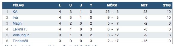 Þór og KA er sem fyrr jöfn á toppi A riðils með 10 stig.