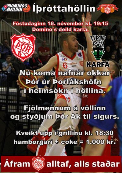 Í kvöld, föstudag tekur Þór Akureyri á móti Þór Þorlákshöfn í sjöundu umferð Dominos deildar karla í körfubolta. Leikurinn fer fram í Íþróttahöllinni á Akureyri klukkan 19:15. Ljóst er að erfitt verkefni býður heimamanna því í árlegri spá fyrirliða, þjálfara og forráðamanna var Þorlákshafnar Þórsurum spáð fjórða sætinu í deildinni.