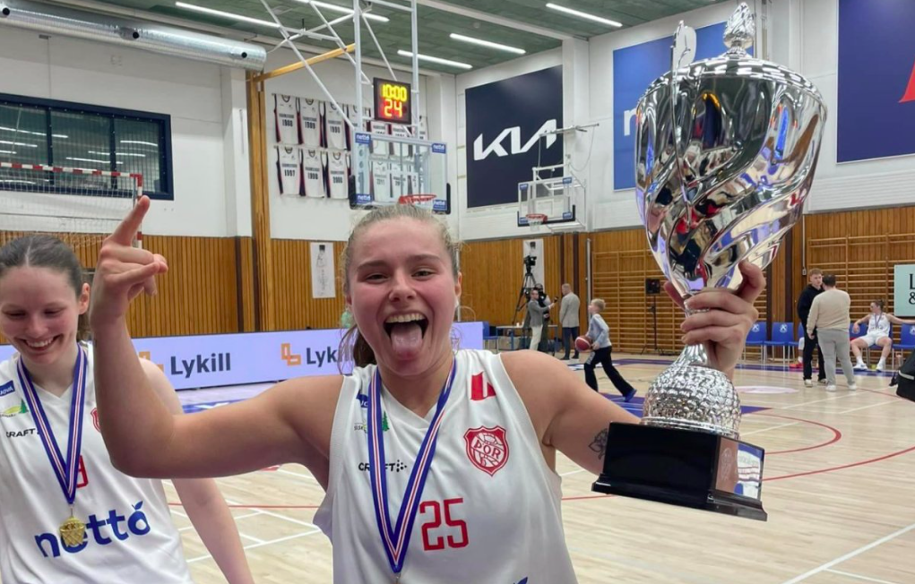 Mynd: Maddie Sutton, fyrirliði Þórs með bikarinn. Valgerður Daníelsdóttir/Thorsport.is