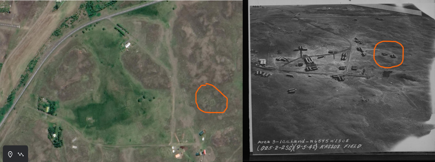 Varðveislumenn minjanna fóru í nokkrar vettvangsferðir á Melana á síðasta ári. Meðal þess sem leiðangursmenn fýsti að vita var fjöldi braggagrunna á staðnum. Loftmynd frá stríðsárunum (svarthvít mynd til hægri) sýnir svo ekki verður um villst að fjöldi bragga á svæðinu var umtalsvert meiri en sýnileg ummerki í dag segja til um. Myndin, sem tekin er í maí árið 1942, er til marks um það hvernig tíminn máir minjarnar út.