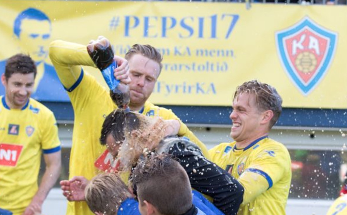 Við erum svo stoltir af strákunum og fólkinu í stúkunni eftir leikinn. Hugur okkar er þó hjá Heimi Guðjóns. Virðing til þín #lififyrirKA