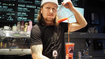 allir starfsmenn joe and the juice líta út eins og þeir hafi verið tottaðir í svona 35 mín áður en þeir mættu í vinnuna.