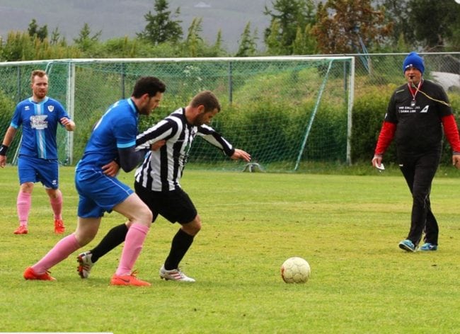 Gamlir knattspyrnumenn og konur spreyta sig árlega á Pollamótinu þar sem eina markmiðið er að skemmta sér sem best. Mynd: Palli Jóh.