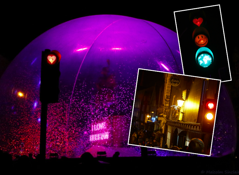 Rauð hjörtu á umferðarljósum, að Akureyrskri fyrirmynd sáust á Lumiere ljósahátíðinni í Durham í Englandi þar sem óhefðbundin umferðarljós vöktu athygli.