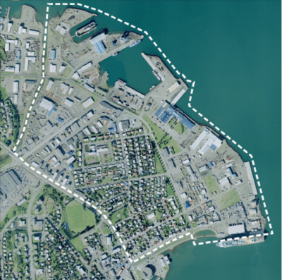Skipulagssvæðið afmarkast af Glerá í norðri, Glerárgötu í vestri, Strandgötu í suðri og til austurs nær svæðið að sjó.
