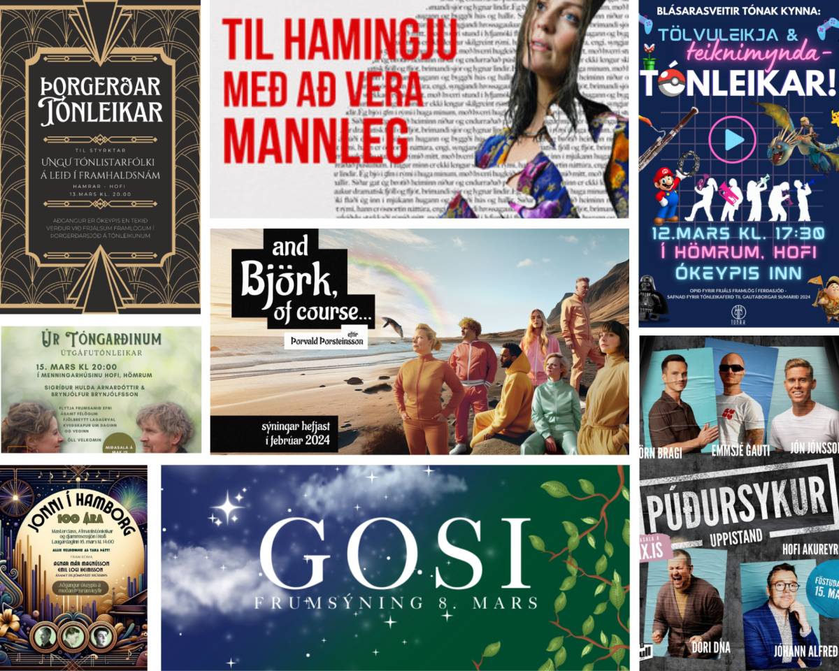 Menningarfélag Akureyrar býður heldur betur upp á viðburðaríka viku þessa vikuna sem byrjar strax í dag með Tölvuleikja- og teiknimyndatónleikum blásaradeildar Tónleikstarskólans Á Akureyri í Hofi. Frítt er inn en tekið er á móti frjálsum framlögum en krakkarnir eru að safna fyrir tónleikafer til Gautaborgar.