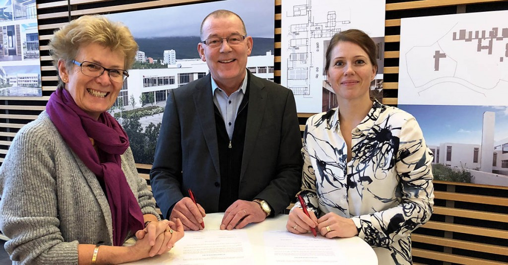 Landsbankinn veitti Vísindaskólanum einnig styrk á dögunum að upphæð 500 þúsund krónur úr Samfélagssjóði sínum. Bankastjóri útibús Landsbankans á Akureyri, Arnar Páll Guðmundsson, afhenti nöfnunum Sigrúnu Stefánsdóttur og Sigrúnu Vésteinsdóttur, viðurkenningarskjal Samfélagssjóðsins að því tilefni.